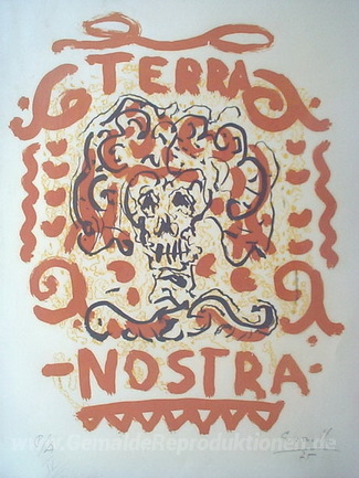 Wir bieten Ihnen eine handgefertigte Reproduktion auf Leinwand des berühmten Kunstwerks 'Terra Nostra' von Alberto Gironella, aus dem Reproduktionsmuseum.