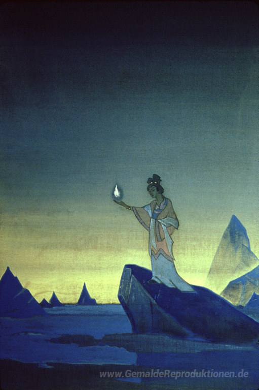 Wir bieten Ihnen eine handgefertigte Reproduktion auf Leinwand des berühmten Kunstwerks 'Agni Yoga' von Nicholas Roerich, aus dem Reproduktionsmuseum.