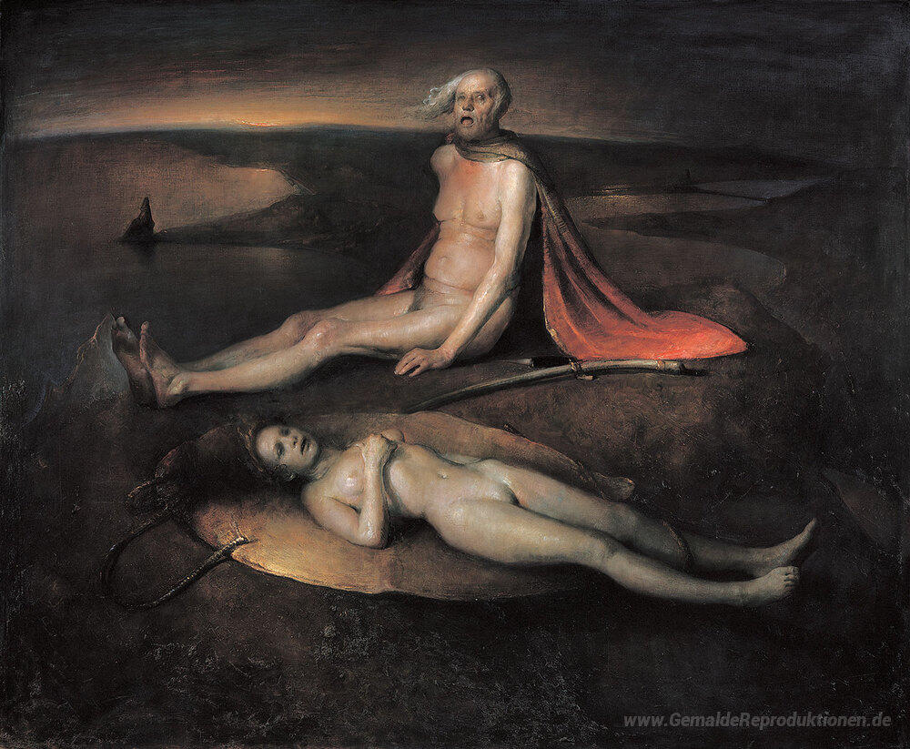 Wir bieten Ihnen eine handgefertigte Reproduktion auf Leinwand des berühmten Kunstwerks 'Alter Mann mit einem toten Mädchen' von Odd Nerdrum, aus dem Reproduktionsmuseum.