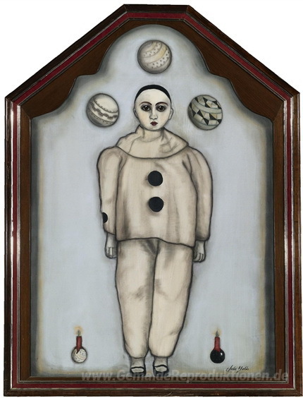 Wir bieten Ihnen eine handgefertigte Reproduktion auf Leinwand des berühmten Kunstwerks 'Arlequín' von Julio Galan, aus dem Reproduktionsmuseum.