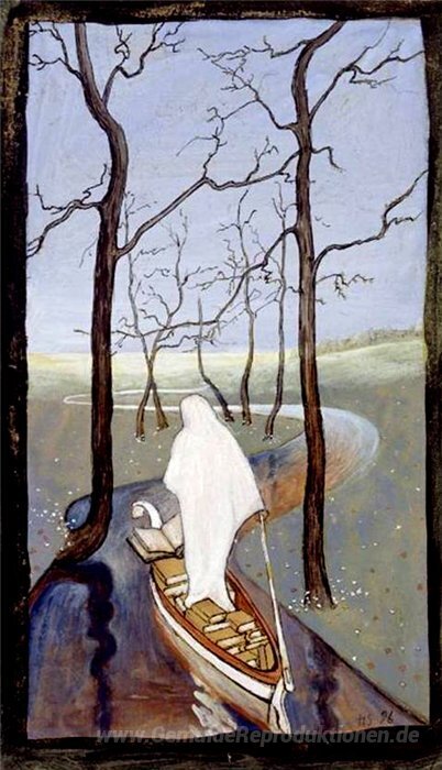 Wir bieten Ihnen eine handgefertigte Reproduktion auf Leinwand des berühmten Kunstwerks 'Auf der Strom des Lebens' von Hugo Simberg, aus dem Reproduktionsmuseum.