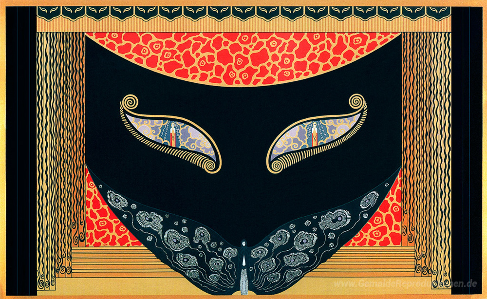 Wir bieten Ihnen eine handgefertigte Reproduktion auf Leinwand des berühmten Kunstwerks 'Augen der Eifersucht' von Erte, aus dem Reproduktionsmuseum.