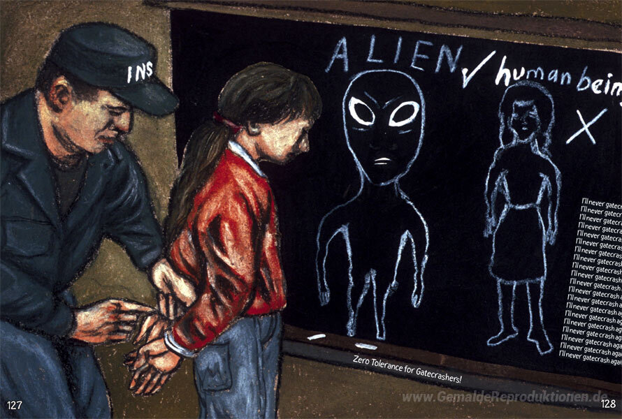 Wir bieten Ihnen eine handgefertigte Reproduktion auf Leinwand des berühmten Kunstwerks 'Ausländer' von Sue Coe, aus dem Reproduktionsmuseum.