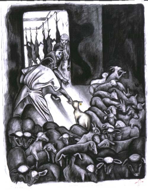 Wir bieten Ihnen eine handgefertigte Reproduktion auf Leinwand des berühmten Kunstwerks 'Auswählen' von Sue Coe, aus dem Reproduktionsmuseum.