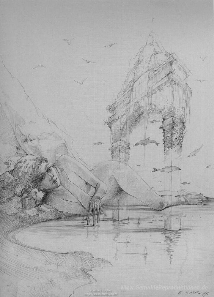 Wir bieten Ihnen eine handgefertigte Reproduktion auf Leinwand des berühmten Kunstwerks 'Bay of Graces' von Wojciech Siudmak, aus dem Reproduktionsmuseum.