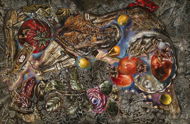 Willkommen in der faszinierenden Welt der Ölgemälde, wo jedes Kunstwerk eine Geschichte erzählt. Eines der herausragenden Exemplare ist Beten Sie für diesen Kleinen (Perforce Sie leben zusammen), geschaffen von dem renommierten Künstler Ivan Albright. Albrights einzigartiger Stil kombiniert Detailtreue mit einer meisterhaften Farbpalette, die emotionale Tiefe und Dramatik erzeugt. Seine Werke sind nicht nur visuelle Meisterwerke, sondern auch Ausdruck seines Lebens und seiner Philosophie.