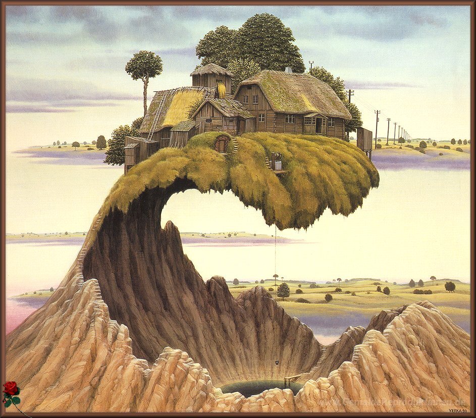 Willkommen in der faszinierenden Welt der Ölgemälde, in der emotionale Tiefe und künstlerische Meisterschaft aufeinandertreffen. Jacek Yerka, ein herausragender zeitgenössischer Künstler, präsentiert in seinem Werk „Bitte schlagen Sie nicht die Tür“ eine einzigartige Kombination aus surrealistischen Elementen und lebendiger Farbgestaltung. Sein künstlerischer Stil entführt den Betrachter in traumhafte Landschaften, die sowohl vertraut als auch fremdartig erscheinen.