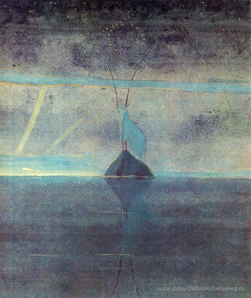 Wir bieten Ihnen eine handgefertigte Reproduktion auf Leinwand des berühmten Kunstwerks 'Capricon' von Mikalojus Ciurlionis, aus dem Reproduktionsmuseum.