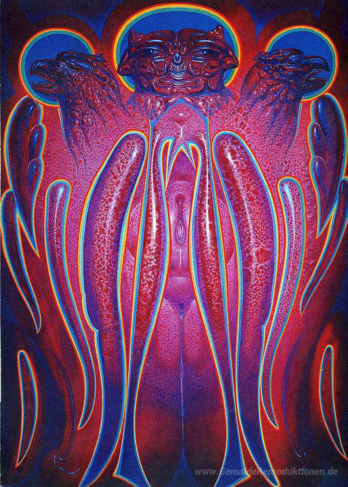 Wir bieten Ihnen eine handgefertigte Reproduktion auf Leinwand des berühmten Kunstwerks 'Cherub mit einem Amethyst' von Ernst Fuchs, aus dem Reproduktionsmuseum.