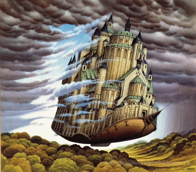 Wir bieten Ihnen eine handgefertigte Reproduktion auf Leinwand des berühmten Kunstwerks 'Chmurolamacz' von Jacek Yerka, aus dem Reproduktionsmuseum.