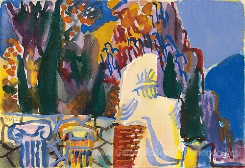 Wir bieten Ihnen eine handgefertigte Reproduktion auf Leinwand des berühmten Kunstwerks 'Delphi' von Samuel Buri, aus dem Reproduktionsmuseum.