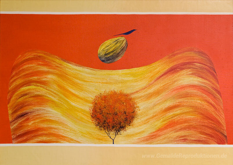 Wir bieten Ihnen eine handgefertigte Reproduktion auf Leinwand des berühmten Kunstwerks 'Der Baum, der Vogel, der Schatten' von Jagdish Swaminathan, aus dem Reproduktionsmuseum.