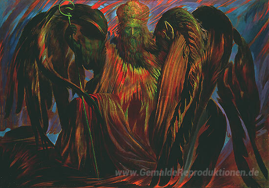Wir bieten Ihnen eine handgefertigte Reproduktion auf Leinwand des berühmten Kunstwerks 'Der Engel des HERRN,' von Ernst Fuchs, aus dem Reproduktionsmuseum.