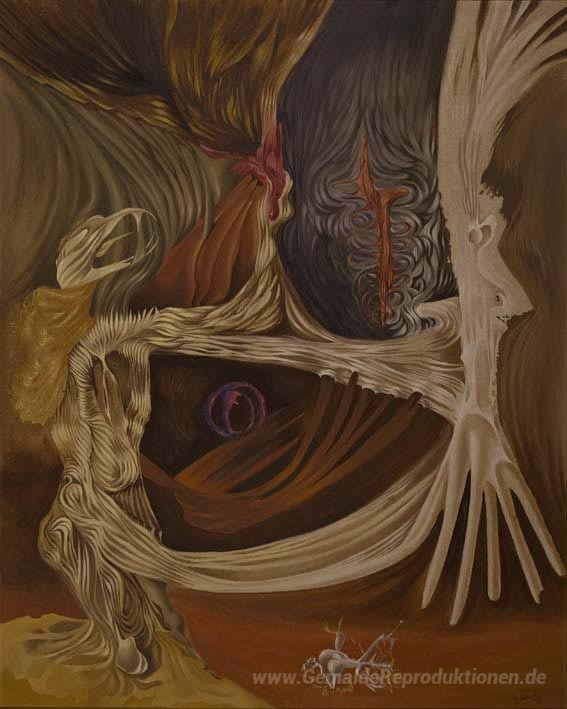 Wir bieten Ihnen eine handgefertigte Reproduktion auf Leinwand des berühmten Kunstwerks 'Der Keim der Nacht' von Jacques Hérold, aus dem Reproduktionsmuseum.