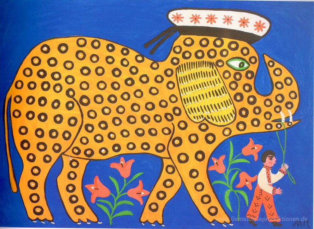 Willkommen bei unserer exklusiven Auswahl an Ölgemälden, wo Kunst und Emotion in perfekter Harmonie verschmelzen. Entdecken Sie das bezaubernde Werk Der kleine Elefant, der Sailor sein wollte von der talentierten Künstlerin Maria Primachenko, die für ihren einzigartigen Stil und ihre lebendige Farbpalette bekannt ist. Ihre Werke sind von folkloristischen Motiven inspiriert und strahlen eine kindliche Phantasie aus, die jeden Betrachtenden in ihren Bann zieht.