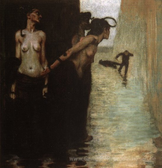 Wir bieten Ihnen eine handgefertigte Reproduktion auf Leinwand des berühmten Kunstwerks 'Der Mörder' von Franz Stuck, aus dem Reproduktionsmuseum.