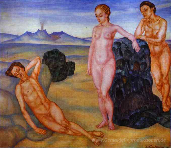 Wir bieten Ihnen eine handgefertigte Reproduktion auf Leinwand des berühmten Kunstwerks 'Der Traum' von Kuzma Petrov-Vodkin, aus dem Reproduktionsmuseum.