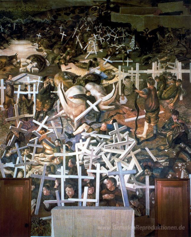 Wir bieten Ihnen eine handgefertigte Reproduktion auf Leinwand des berühmten Kunstwerks 'Die Auferstehung des Soldaten' von Stanley Spencer, aus dem Reproduktionsmuseum.
