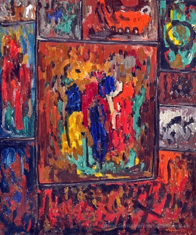 Wir bieten Ihnen eine handgefertigte Reproduktion auf Leinwand des berühmten Kunstwerks 'Die Buntglasfenster' von George Stefanescu-Ramnic , aus dem Reproduktionsmuseum.