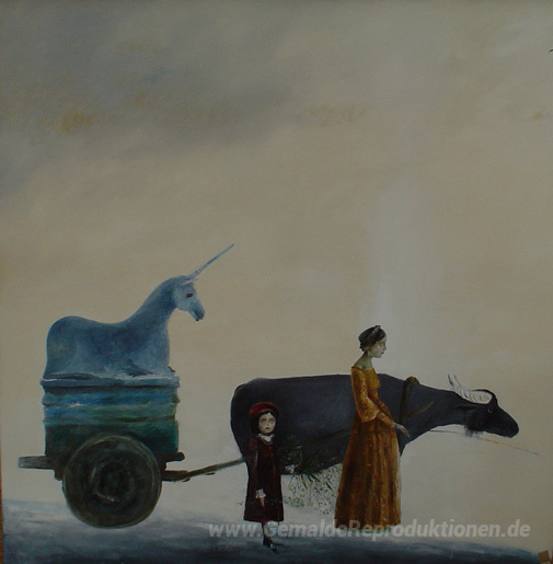 Wir bieten Ihnen eine handgefertigte Reproduktion auf Leinwand des berühmten Kunstwerks 'Die Reise des Zweiten Unicorn' von Stefan Caltia, aus dem Reproduktionsmuseum.