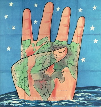 Wir bieten Ihnen eine handgefertigte Reproduktion auf Leinwand des berühmten Kunstwerks 'Die vier Ecken' von Francesco Clemente, aus dem Reproduktionsmuseum.