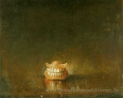 Wir bieten Ihnen eine handgefertigte Reproduktion auf Leinwand des berühmten Kunstwerks 'Die Zahnersatz' von Odd Nerdrum, aus dem Reproduktionsmuseum.