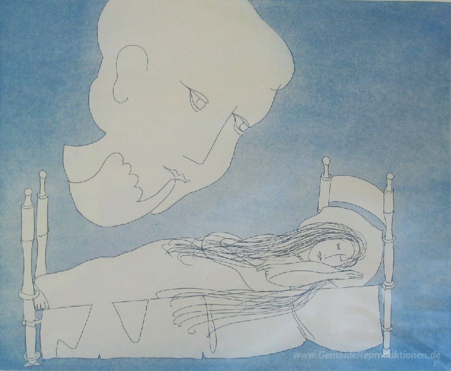 Wir bieten Ihnen eine handgefertigte Reproduktion auf Leinwand des berühmten Kunstwerks 'Dornröschen' von Charles Blackman, aus dem Reproduktionsmuseum.