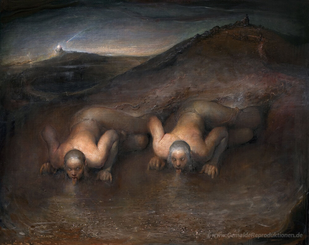 Wir bieten Ihnen eine handgefertigte Reproduktion auf Leinwand des berühmten Kunstwerks 'Dustlickers' von Odd Nerdrum, aus dem Reproduktionsmuseum.