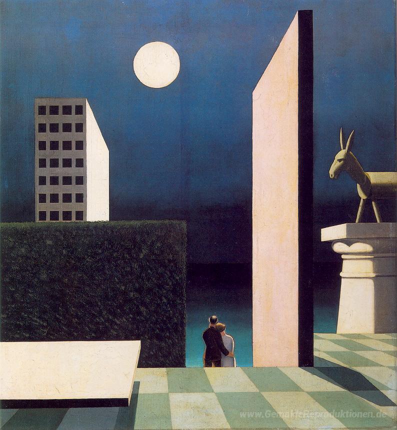 Wir bieten Ihnen eine handgefertigte Reproduktion auf Leinwand des berühmten Kunstwerks 'Grüner Esel' von Sandor Bortnyik, aus dem Reproduktionsmuseum.