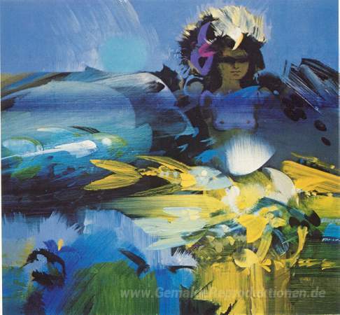 Wir bieten Ihnen eine handgefertigte Reproduktion auf Leinwand des berühmten Kunstwerks 'Guatavita' von Alejandro Obregon, aus dem Reproduktionsmuseum.
