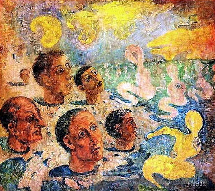 Wir bieten Ihnen eine handgefertigte Reproduktion auf Leinwand des berühmten Kunstwerks 'Heads on the Beach' von David Burliuk, aus dem Reproduktionsmuseum.