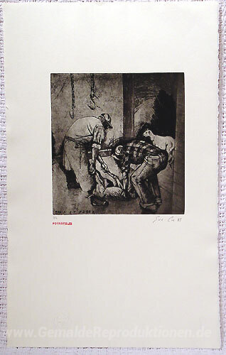 Wir bieten Ihnen eine handgefertigte Reproduktion auf Leinwand des berühmten Kunstwerks 'Hot Boden' von Sue Coe, aus dem Reproduktionsmuseum.