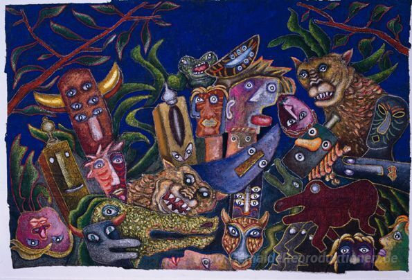 Wir bieten Ihnen eine handgefertigte Reproduktion auf Leinwand des berühmten Kunstwerks 'Impressioni d'Africa' von Enrico Baj, aus dem Reproduktionsmuseum.