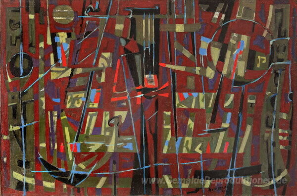 Wir bieten Ihnen eine handgefertigte Reproduktion auf Leinwand des berühmten Kunstwerks 'Instrument de la passion' von Jean Bertholle, aus dem Reproduktionsmuseum.
