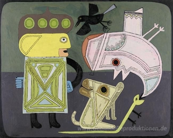 Wir bieten Ihnen eine handgefertigte Reproduktion auf Leinwand des berühmten Kunstwerks 'Irschou' von Victor Brauner, aus dem Reproduktionsmuseum.
