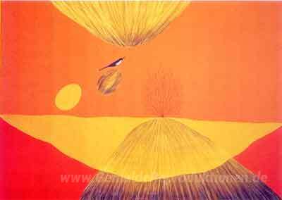 Wir bieten Ihnen eine handgefertigte Reproduktion auf Leinwand des berühmten Kunstwerks 'Journey - I' von Jagdish Swaminathan, aus dem Reproduktionsmuseum.