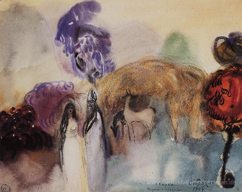 Willkommen in der faszinierenden Welt der Ölgemälde, wo die Farben lebendig werden und Geschichten erzählt werden. Eines der herausragenden Werke, das unsere Kollektion ziert, ist das Gemälde König mit Tochter des renommierten Künstlers Martiros Saryan. Saryan, bekannt für seinen einzigartigen Stil, vereint in seinen Arbeiten eine harmonische Mischung aus traditionellen und modernen Techniken, um Emotionen und Stimmungen mit jedem Pinselstrich einzufangen.
