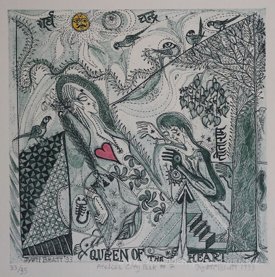 Wir bieten Ihnen eine handgefertigte Reproduktion auf Leinwand des berühmten Kunstwerks 'Königin der Herz-' von Jyoti Bhatt, aus dem Reproduktionsmuseum.