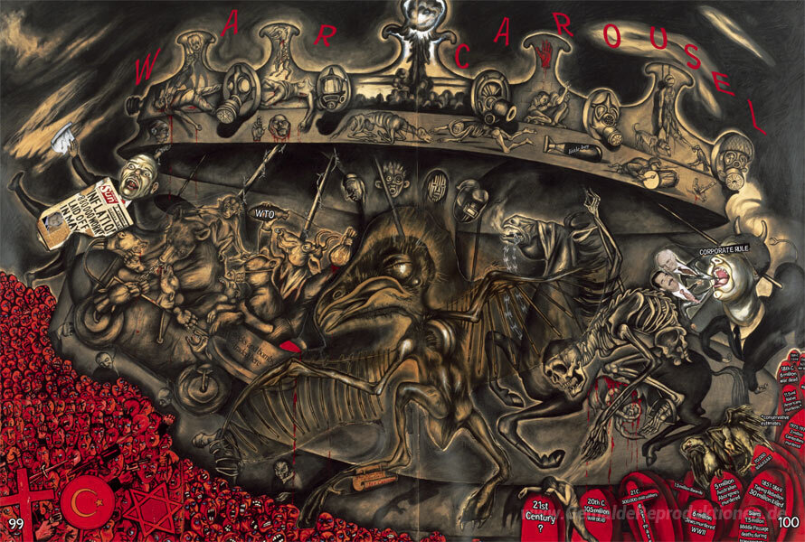 Wir bieten Ihnen eine handgefertigte Reproduktion auf Leinwand des berühmten Kunstwerks 'Karussell' von Sue Coe, aus dem Reproduktionsmuseum.
