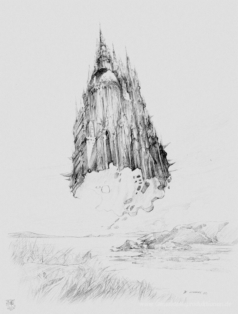 Wir bieten Ihnen eine handgefertigte Reproduktion auf Leinwand des berühmten Kunstwerks 'Kathedrale Volante' von Wojciech Siudmak, aus dem Reproduktionsmuseum.