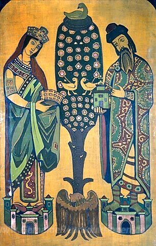 Wir bieten Ihnen eine handgefertigte Reproduktion auf Leinwand des berühmten Kunstwerks 'Krone der Welt' von Nicholas Roerich, aus dem Reproduktionsmuseum.