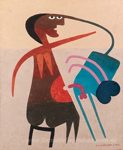 Wir bieten Ihnen eine handgefertigte Reproduktion auf Leinwand des berühmten Kunstwerks 'La machine à Vorrechte' von Victor Brauner, aus dem Reproduktionsmuseum.