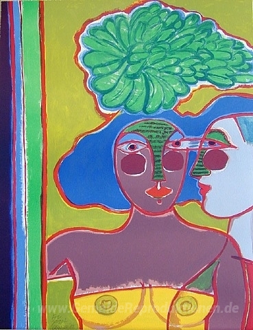 Wir bieten Ihnen eine handgefertigte Reproduktion auf Leinwand des berühmten Kunstwerks 'Les Amies' von Corneille, aus dem Reproduktionsmuseum.