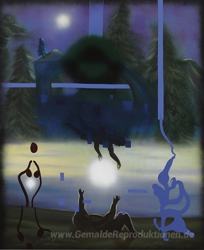 Wir bieten Ihnen eine handgefertigte Reproduktion auf Leinwand des berühmten Kunstwerks 'Llegando por mi' von Julio Galan, aus dem Reproduktionsmuseum.
