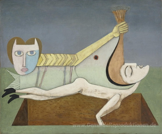 Wir bieten Ihnen eine handgefertigte Reproduktion auf Leinwand des berühmten Kunstwerks 'L'Tier Manuel' von Victor Brauner, aus dem Reproduktionsmuseum.