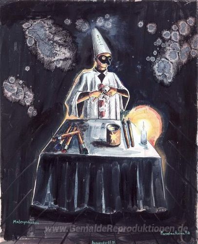 Wir bieten Ihnen eine handgefertigte Reproduktion auf Leinwand des berühmten Kunstwerks 'Malergedanken. Pinselmathematik' von Jorg Immendorff, aus dem Reproduktionsmuseum.