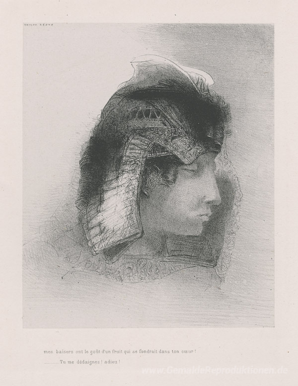 Wir bieten Ihnen eine handgefertigte Reproduktion auf Leinwand des berühmten Kunstwerks 'Meine Küsse haben den Geschmack der Frucht, die in deinem Herzen' von Odilon Redon, aus dem Reproduktionsmuseum.