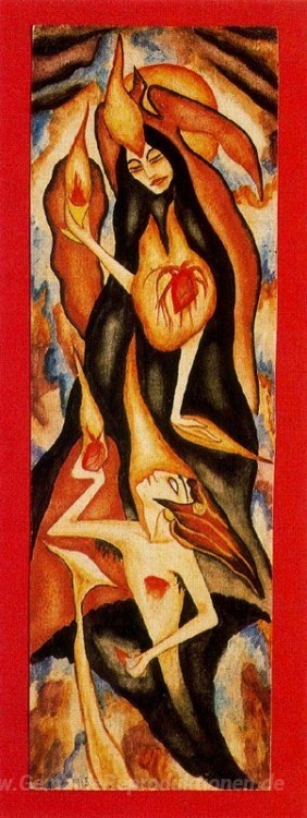 Wir bieten Ihnen eine handgefertigte Reproduktion auf Leinwand des berühmten Kunstwerks 'Ofrenda Cuori' von Xul Solar, aus dem Reproduktionsmuseum.