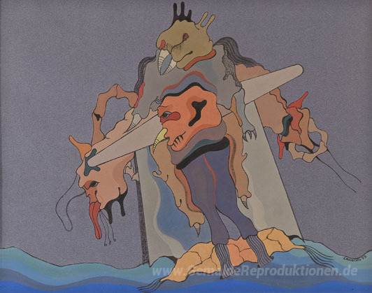 Wir bieten Ihnen eine handgefertigte Reproduktion auf Leinwand des berühmten Kunstwerks 'Ohne Titel' von Jorge Camacho, aus dem Reproduktionsmuseum.