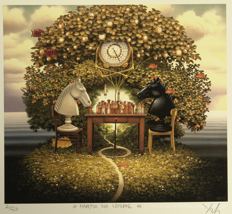 Willkommen in der faszinierenden Welt der Ölgemälde, in der Kreativität und Emotionen auf lebendige Weise miteinander verschmelzen. Eines der herausragenden Werke, das Sie in unserer Sammlung finden, ist Party auf der Insel von dem renommierten Künstler Jacek Yerka. Yerka ist bekannt für seine surrealistischen Kompositionen, die oft die Grenzen von Realität und Phantasie überschreiten. Sein einzigartiger Stil, der detailreiche Elemente mit lebendigen Farben kombiniert, zieht den Betrachter in eine traumartige Welt und lässt ihn nicht mehr los.